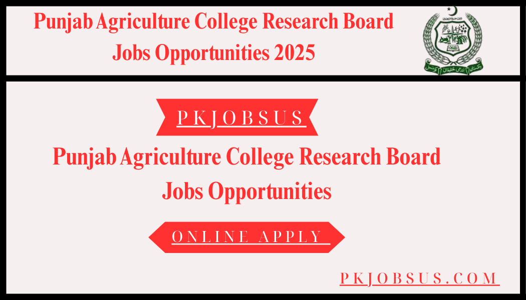 Pakistan Lahore Jobs, Punjab Agriculture College Research Board Lahore has announced new government job opportunities for talented, skilled and motivated individuals who want to work in a reputable public-sector organization. These jobs are aimed at strengthening the board’s administrative, technical and quality-control systems to support agricultural research and development across Punjab. Candidates who are looking for stable employment with long-term career growth can benefit greatly from these opportunities.